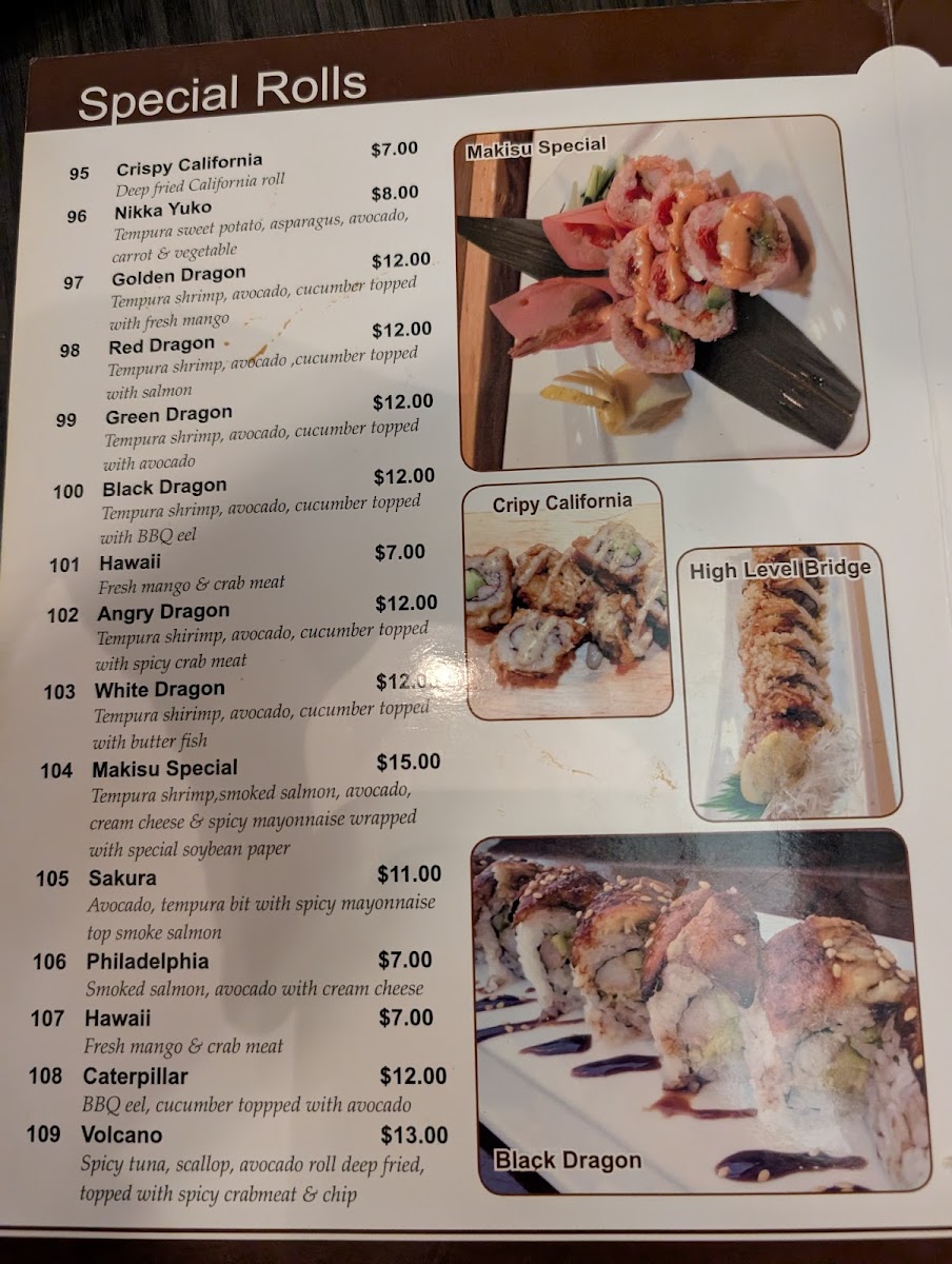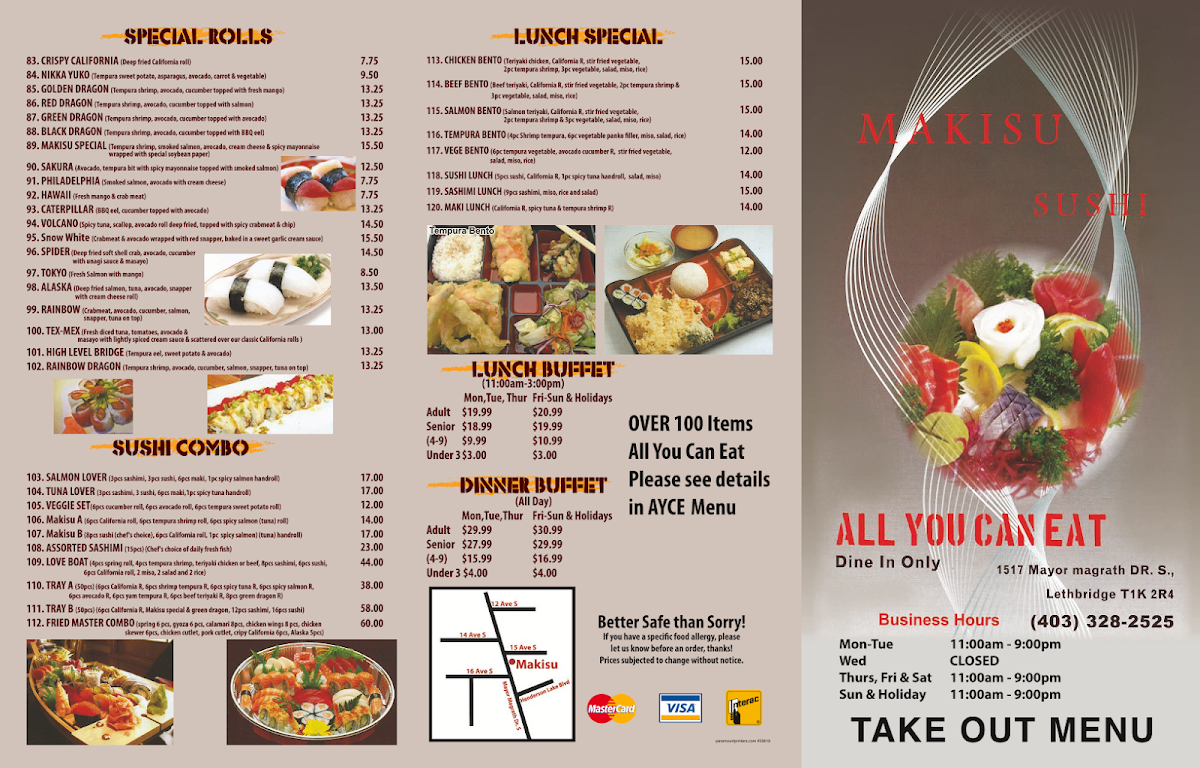 Makisu Sushi Lethbridge’s menu is suitable for casual dining and quick order situations, with options that cater to both light meals and more filling dining experiences. The availability of all-you-can-eat sushi combos also makes it practical for guests seeking a broad variety of sushi in a single visit.